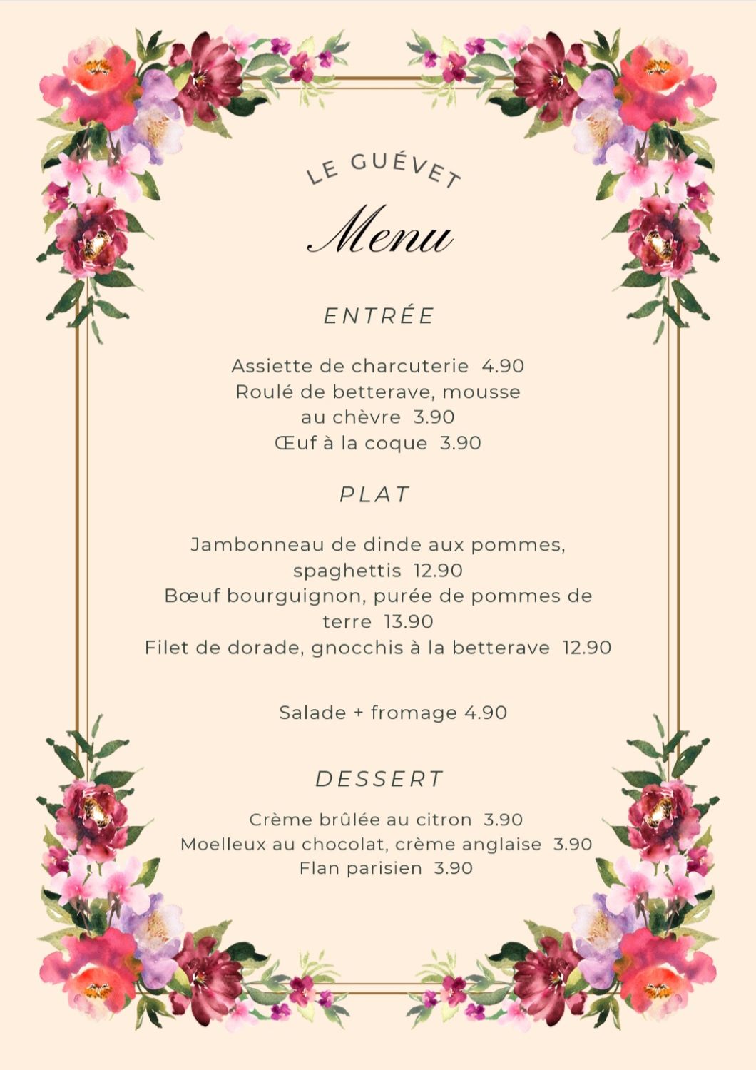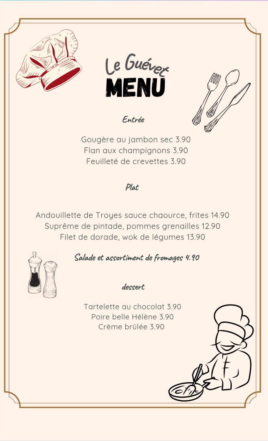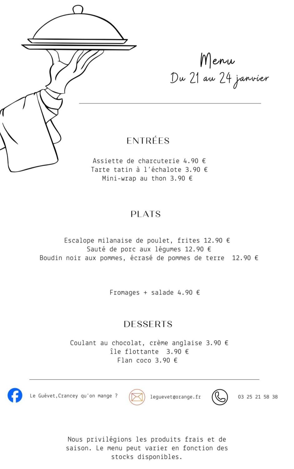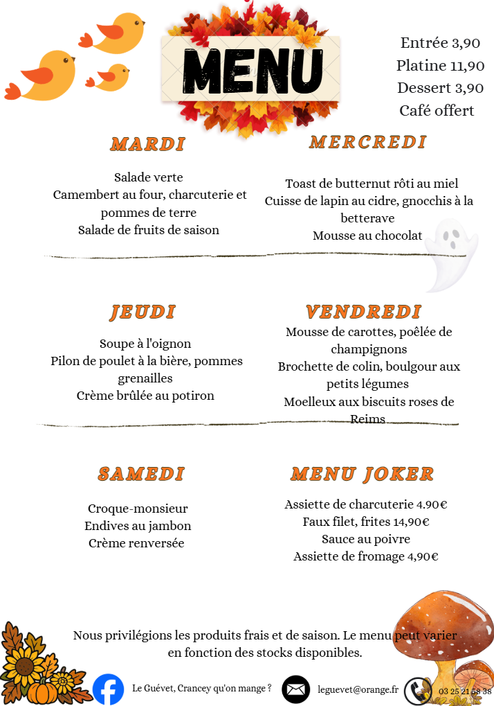 Chaque semaine un menu complet avec des plats faits maison. Laissez-vous surprendre par des recettes créatives qui varient chaque semaine.